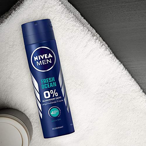 Nivea Men Deodorante spray Fresh Ocean senza alluminio (ACH) da 150 ml, con formula rinfrescante, protezione per 48 ore e proprietà nutritive per la pelle (etichetta in lingua italiana non garantita)