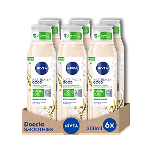 Nivea Doccia Olio In Gel Naturally Good Essenza di Camomilla e Arricchito con Olio Bio, Formula Biodegradabile, 6 Pezzi da 300ml