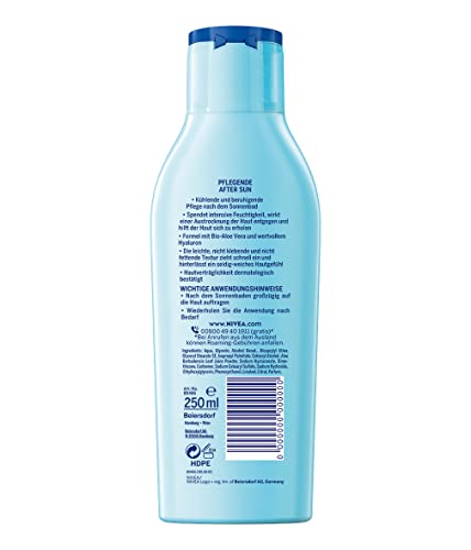 NIVEA Sun lozione doposole nutriente (400 ml), lozione con effetto lenitivo per la pelle dopo l'esposizione al sole, doposole con aloe vera biologica e acido ialuronico per 48h di idratazione.