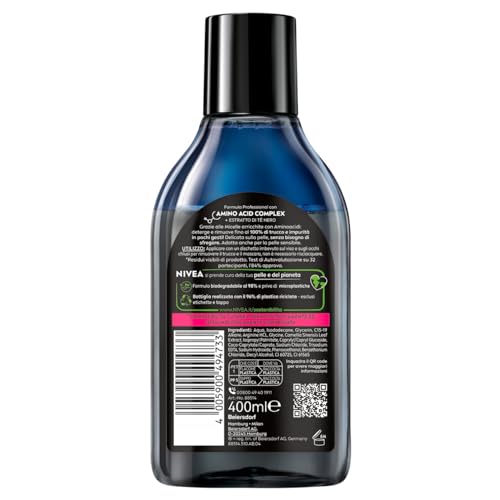Nivea Micellair Professional Acqua Micellare Bifase Aminoacid Complex Struccante Bifasico con estratto di té nero per viso e occhi trucco waterproof - 3 Flaconi da 400ml