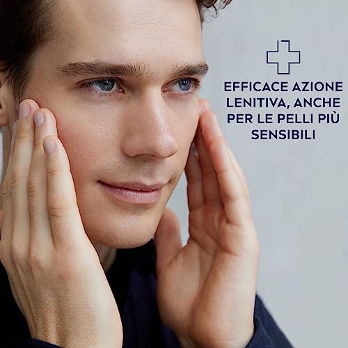 Applicare il balsamo dopobarba NIVEA Protect & Care sul viso dopo la rasatura e fare assorbire, evitare il contatto con gli occhi