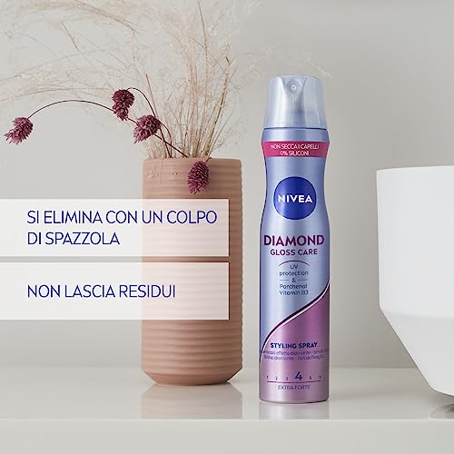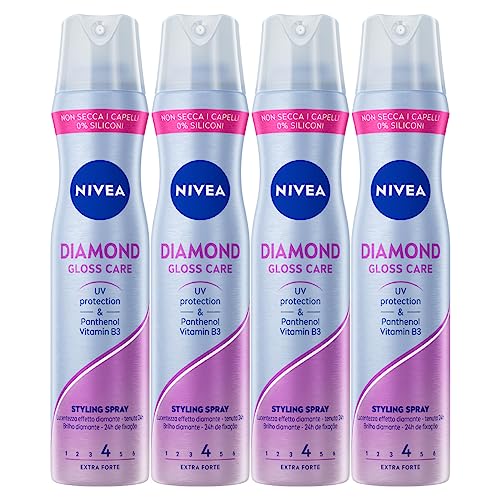 Nivea Styling Diamond Gloss Care Lacca Spray Fissante per Capelli con Tenuta Extra Forte non Lascia Residui si Elimina con la Spazzola - 4 Flaconi da 250ml