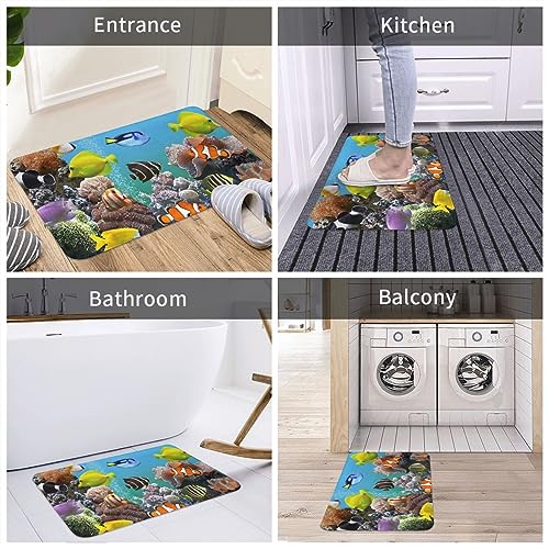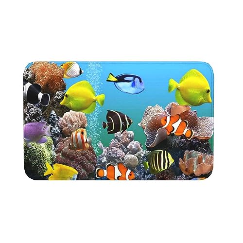 NIXNUT Tappeto da bagno stampato in flanella con pesci corallo oceano tappeto divertente per interni ingresso cucina tappetino zerbino
