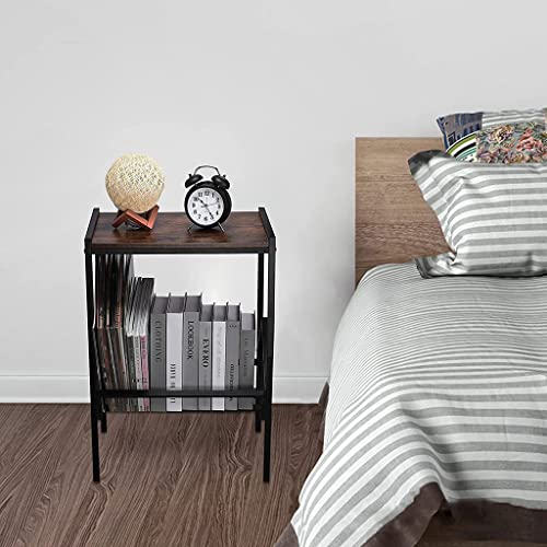★ Semplice ed elegante: La combinazione di pannelli rustici marroni e struttura in metallo nero aggiunge fascino industriale, bellezza retrò e semplice, design robusto e stabile al ripiano di stoccaggio.