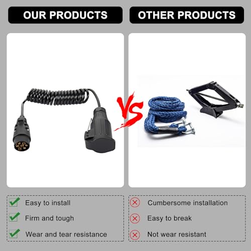 Materiale di alta qualità: il cavo di prolunga per rimorchio è realizzato in TPU, cavo adattatore per rimorchio impermeabile, resistenza all'abrasione, resistenza al freddo, adattatore da 7 a 13 poli, resistenza alle alte temperature, resistenza all'olio, resistenza all'invecchiamento e resistenza alla fiamma, ecc. Cavo di estensione per rimorchio soddisfa le esigenze in diversi ambienti di lavoro.