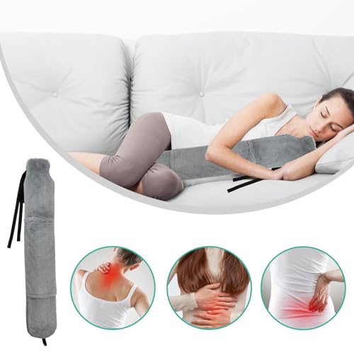 Nizirioo, borsa dell'acqua calda lunga con rivestimento: borsa dell'acqua calda portatile, cintura per collo e spalle, addome, termoterapia, grande borsa dell'acqua calda