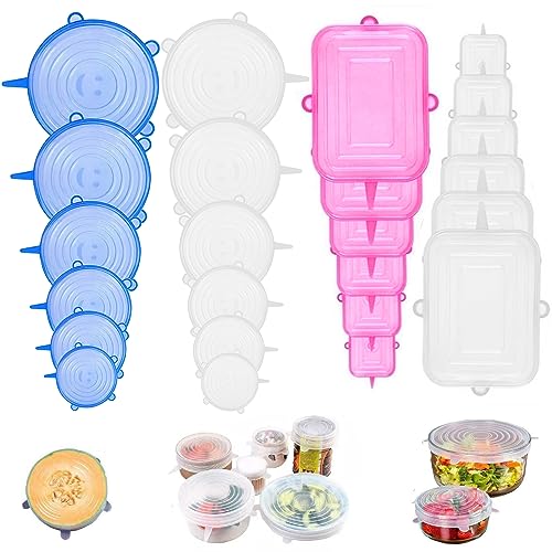 Nizirioo - Set di 24 coperchi universali in silicone elasticizzato, in silicone, riutilizzabili, in diverse misure, coperchi in silicone per lattine