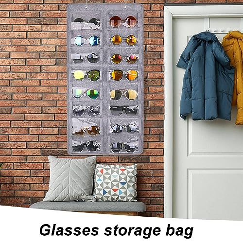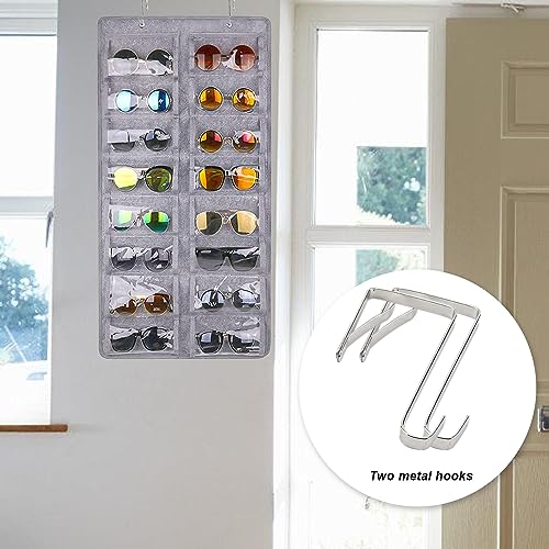 Nizirioo Occhiali da Sole Appesi Organizer Organizer da Parete per Occhiali da Sole con 16 Scomparti a Prova di Polvere, con 2 Gancio in Metallo, Pieghevole Borsa per Appendere Gli Occhiali per Casa