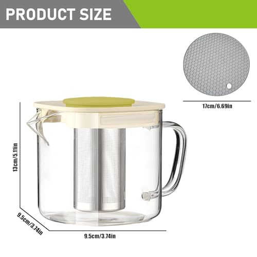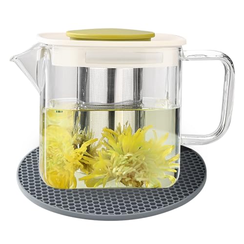 Nizirioo Teiera in Vetro Borosilicato 1000ml Teiera Vetro con Infusore, Teiera di Vetro tè Resistente al Calore Teiera con Infusore in Acciaio Inox Rimovibile con Stuoia, per Foglie Sciolte