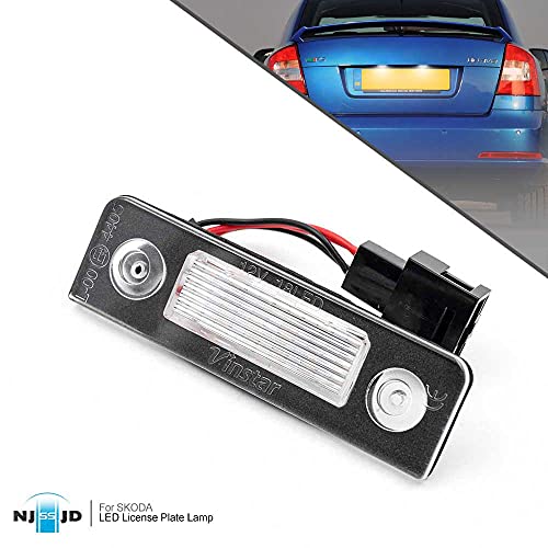 Njssjd 2X Bianco Canbus Senza Errori LED Targa Luce per Skoda Octavia MKII 1Z 09-13 Roomster 5J 06-10 Led Tag Lampade