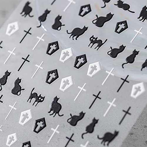 NKADKNS Adesivi per nail art, adesivi stereo 5D, elementi punk, croce, gatti neri, lettere, design intaglio, 3 fogli, unghie autoadesive, adatti per Pasqua, Halloween, decorazione unghie