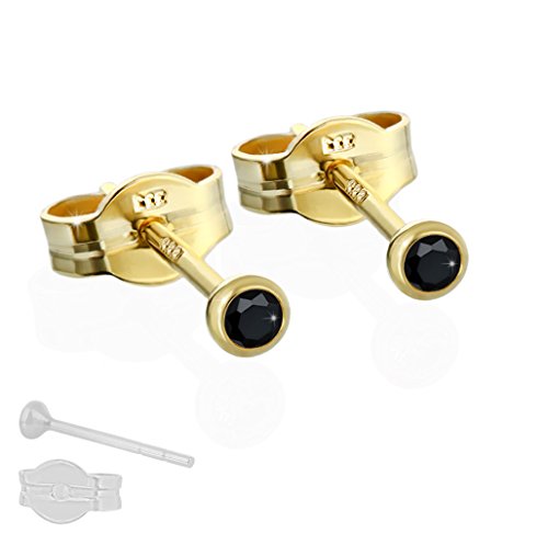 NKlaus coppia di orecchini a perno oro 333er 2,50mm zirconi neri signore uomini bambini 6592