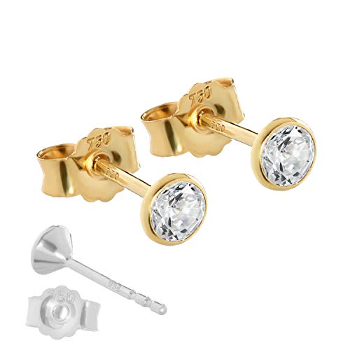 NKlaus coppia di orecchini a perno da 4mm in oro giallo 750 orecchini in oro 18 carati cristallo zircone bianco 2613