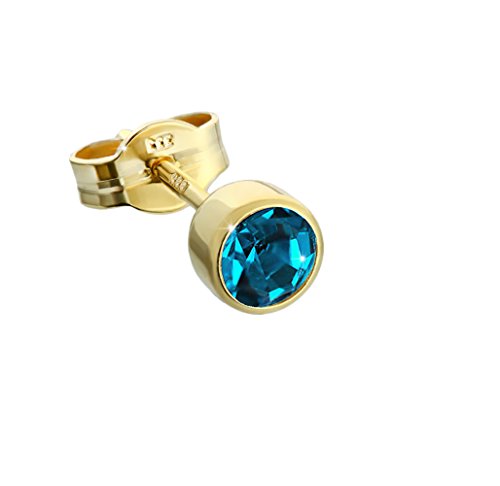 NKlaus coppia di orecchini singoli oro 333 8 carati 4,50mm turchese zircone signore uomini bambini 6600