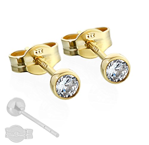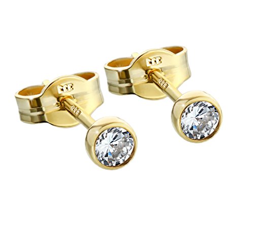 NKlaus Orecchini a perno a coppia oro 333 3,5 mm zirconia cubica SIGNORI UOMINI BAMBINI 1937