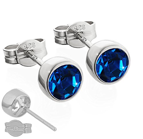 NKlaus Silver Coppia di orecchini a perno in argento 925 5,50mm blu scuro con zirconi Donna Uomo 6552
