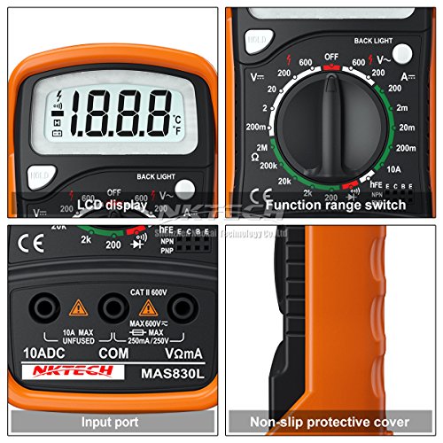 NKTECH MAS830L Multimetro Digitale Multi Tester AC DC Tensione DC Rivelatore Resistenza Corrente Voltmetro Misuratore Portatile Retroilluminazione Ohmmeter Diodo Test Dati Tenere Con TL-1 Cacciavite