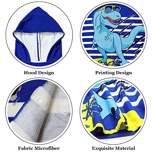 NLAND Telo Mare Bambini con Cappuccio Asciugamano da Bambini Accappatoio con Cappuccio Poncho Carino Asciugamano con Cappuccio Cartone Animato(Dinosauro Blu)