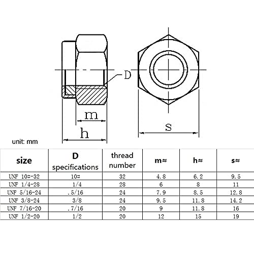 NLLeZ UNF 10# 1/4 5/16 3/8 1/2 7/16 304 A2-70 Acciaio Inossidabile UK US. Sottile Filo di Nylon Hex Inserto Dado autobloccante Nylock Locknut (Colore: Rosso)