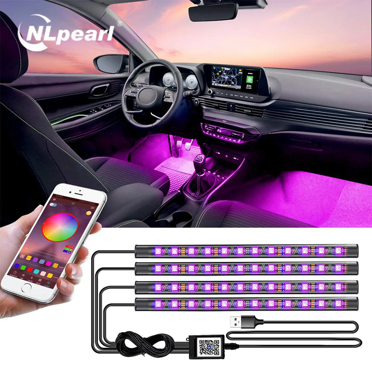 Nlpearl RGB LED Strip Car Interior Decorative Lights with USB Wireless Remote APP Music Control Multiple Modes Decorative Lamp