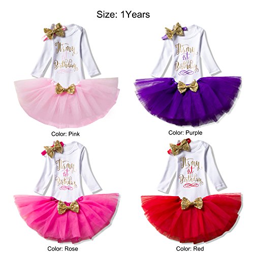 NNJXD Ragazza Neonata è Il Mio 1 ° Compleanno 3 Pezzi Abiti Pagliaccetto + Gonna + Fascia Taglia(1) 1 Anni 157 Rosso-T