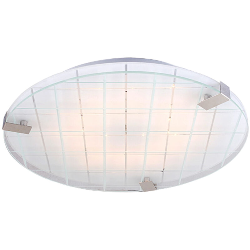 Effetto spaziale impressionante ottenuto grazie alla struttura a due livelli: due paralumi piatti in vetro temperato con decoro applicato con il metodo della decalcomania, resistente ai graffi e alla pulizia delicata Materiale: base in acciaio, paralume in vetro Altezza: 9 Larghezza: 31 Profondità: 31 Dimensioni (altezza/larghezza/profondità): 9x31x31 Peso (netto): 2,03 LED integrato: No Numero di sorgenti luminose: 2 Sorgente luminosa inclusa: No Numero di sorgenti x base: 2xE27
