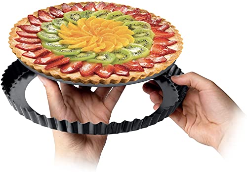 NOBILE LOVELYCARE stampo per crostata 28 cm fondo amobivile in metallo antiaderente nero quiche e torte salate teglia dolci comoda estrazione semplice della torta