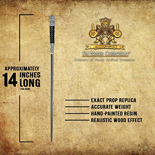 Dimensioni della bacchetta: un'autentica ricreazione della bacchetta di Leta Lestrange. Viene fornito in una scatola standard con finestre. La bacchetta all'interno è identica alla versione da collezione ma senza la scatola da collezione. Questa replica esatta misura circa 34,5 cm di lunghezza.