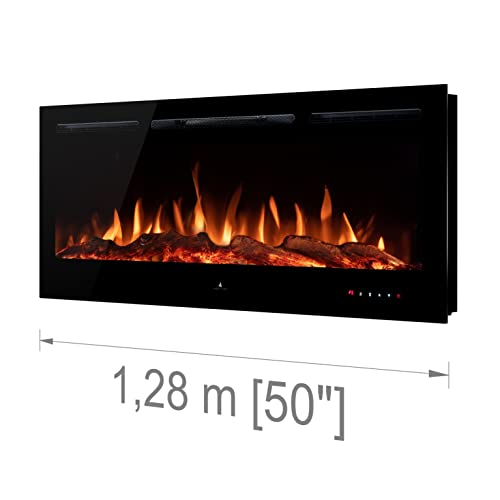 Pannello touch retroilluminato e controllo a distanza completo (on/off, 3 effetti di fiamma, luminosità della fiamma a 5 stadi, timer 0,5 - 7,5 ore, riscaldamento 750/1.500 Watt).