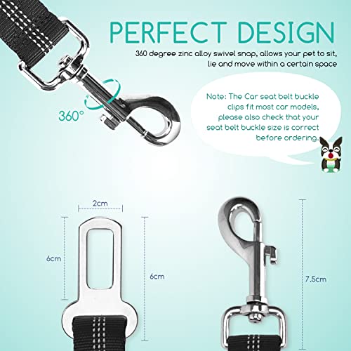 Nobleza Cintura di Sicurezza per Cani, 2 Pezzi Cintura di Sicurezza per Cani con Striscia Riflettente e Ammortizzazione Elastica, Guinzaglio Cane Auto Regolabile in Nylon con Gancio, Nero, 50-70cm
