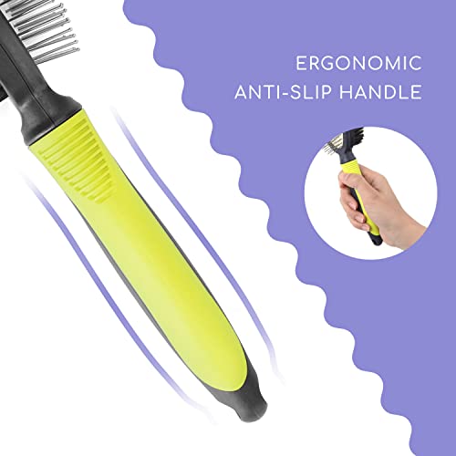 " 【Impugnatura ergonomica】: L'impugnatura ergonomica è comoda da tenere. Il manico è progettato per ridurre al minimo lo sforzo fisico e il disagio, e quindi massimizzare l'efficienza. Ha una presa antiscivolo che impedisce alla tua mano di scivolare e il tuo polso non si affaticherà, non importa quanto a lungo spazzoli il tuo animale.