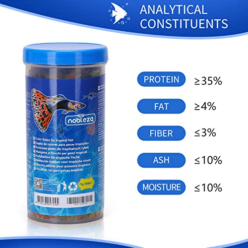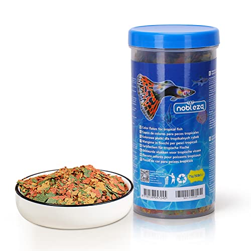 Nobleza - Pesce tropicale Mangime Completo Altamente nutriente sotto Forma di Fiocchi, ha una formula efficace che promuove la crescita, la salute, la longevità e aumenta il tono della pelle 500ml