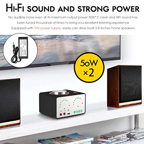 Nobsound Tone, amplificatore audio da 100W (50Wx2), Hi-Fi Bluetooth multifunzione, amplificatore per cuffie, livello sonoro, USB, AUX, RCA, sistema di diffusori home stereo