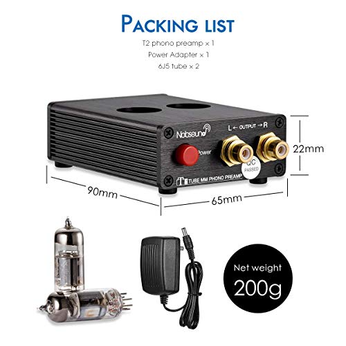 Nobsound T1, preamplificatore phono MM per mini giradischi, phono stage, per fonografo stereo audio Hi-Fi, ultra compatto