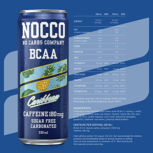 Nocco BCAA Energy Drink 330 ml 180 mg di caffeina - Caraibi, 12 confezioni