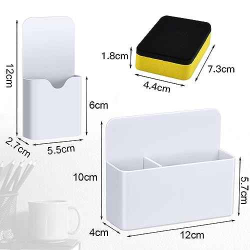 NOCHME Portapenne Magnetico Per Lavagna Con Cancellino, Porta Pennarelli Magnetici Versatile Per Frigo, Lavagna, Libro, Ufficio, Scuola, Bianca
