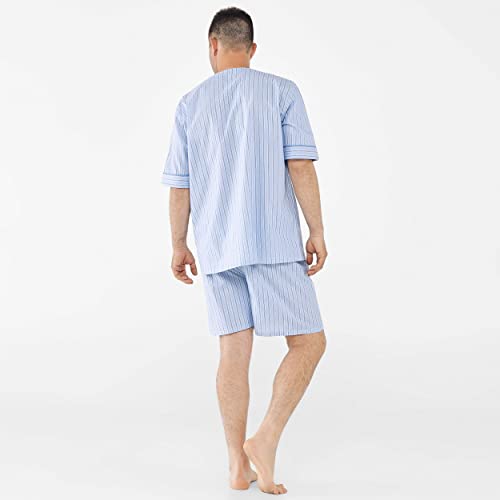 El Búho Nocturno - Pigiama Corto da Uomo con Abbottonatura in Maglia Tessuto a Righe Blu Scuro 100% Cotone Taglia 4 (L)