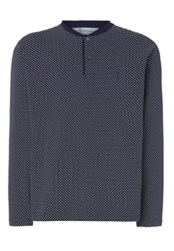 El Búho Nocturno - Pigiama Lungo Premium da Uomo Colletto Abbottonato Lavorata a Maglia Stampato Navy 100% Cotone Taglia 5 (XL)