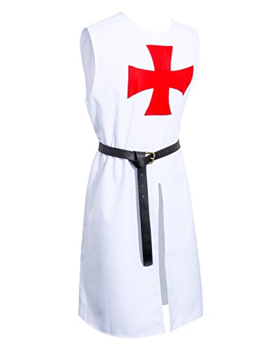 Nofonda Tunica Medievale del Cavaliere Templare, Costume Senza Maniche con Cintura per Halloween, Cosplay, Carnevale, Masquerade, Feste a Tema (Bianco)
