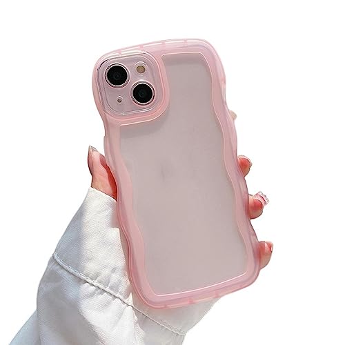NOGRAX Cabina telefonica per iPhone 15 14 13 12 11 PRO Max Mini XS Se 7 8 Plus Caso Carino Trasparente Curly Wave Ibrido Shock Affrotta del Paraurti Cover Soft Funda-per iPhone 14Pro Max,Rosa