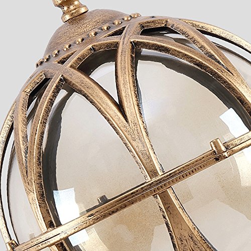 Noilyn- Lampada da terra per esterni in alluminio con illuminazione a globo Lampada da palo rustico vintage rustico per ingressi giardino Colonne attacco E27 (Color: Bronze-48cm)