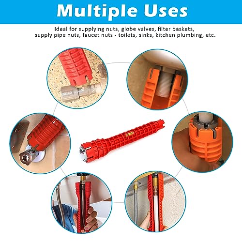 APPLICAZIONE: L'attrezzo per il montaggio del lavello può essere facilmente ruotato in angolazioni scomode, adatto per dadi di ingresso dell'acqua, valvole di intercettazione, cestini di filtraggio, dadi di ingresso dell'acqua, dadi di rubinetti, servizi igienici e altri luoghi. Ideale per la casa, la toilette, il bagno, le installazioni in cucina e altro ancora.