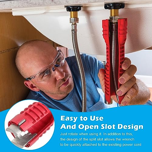 DESIGN PRATICO: Il design del braccio extra-lungo della chiave per tubi del lavandino può raggiungere facilmente i punti difficili da raggiungere e aiutare a stringere i dadi del tubo del rubinetto. Il design del modello antiscivolo rende facile affrontare la potenza della mano e il punto di alimentazione è stabile. Adatto all'uso in piccole stanze e facile da ruotare.