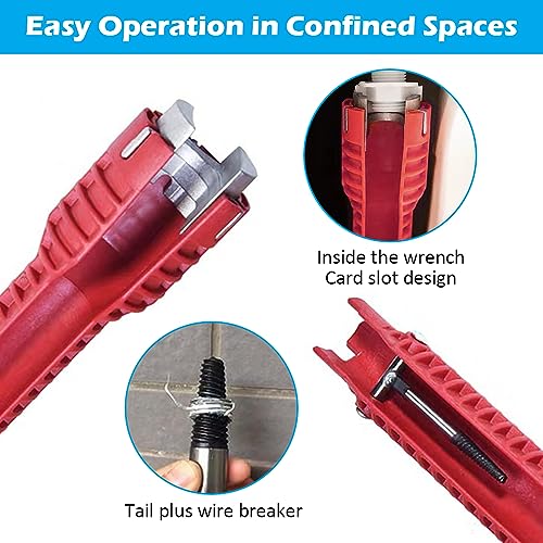 INSTALLAZIONE IN PICCOLI SPAZI: il design unico della chiave di montaggio per lavello la rende un ottimo sostituto di una normale chiave in qualsiasi situazione. Può essere facilmente fissata al lavandino, allo scaldabagno, al bollitore e ad altri piccoli spazi per lavori di montaggio e smontaggio. Adatta all'uso in ambienti piccoli e facile da ruotare. Sviluppato appositamente per i tubi dell'acqua e i rubinetti.