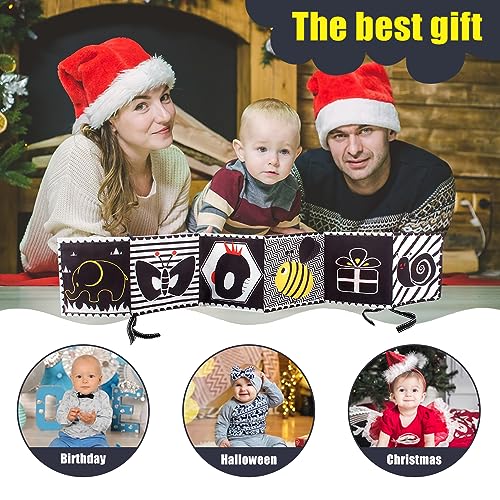 NOKDAL Libro di Stoffa per Neonati Libri Sensoriali Neonati Libro in Tessuto per Bambini Libro per Bambini in Bianco e Nero Giocattoli Sensoriali in Bianco e Nero ad Alto Contrasto per Neonatii