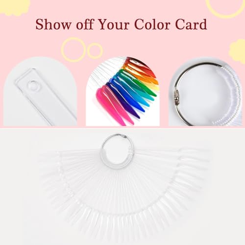 QUANTITÀ: 50 pezzi per ogni set di espositore smalti per unghie, totale 4 set, 200 pezzi. Fornito con un anello di metallo, più facile da organizzare e trasportare i bastoncini per la pratica dello smalto, più comodo da usare e conservare.