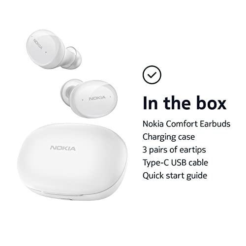 Nokia Comfort True Wireless Auricolari (TWS-411 WH) - Cuffie in-ear Bluetooth 5.1 con controllo touch - abilitato per assistente vocale, 29 ore con custodia di ricarica, bianco
