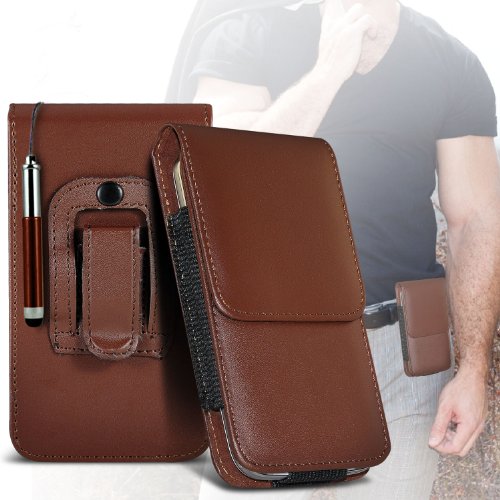 Nokia Lumai 635, 630 Protection housse en simili-cuir étui de ceinture Etui rabattable porte-capot & Mini rétractable Stylet Brown par * Aventus *