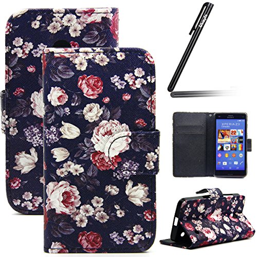 Nokia Lumia 630 (4.5 Pollici) 635 N630 Cassa - Ukayfe Premium PU Leather Wallet Case Cover Magnetico Book Stand Skin Flip Protezione in Pelle con Silicone Housing Custodia Con free Stilo Penn - BLACK ROSE