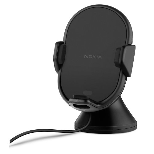 Supporto da auto nero Nokia con ricarica wireless facile e veloce da installare.